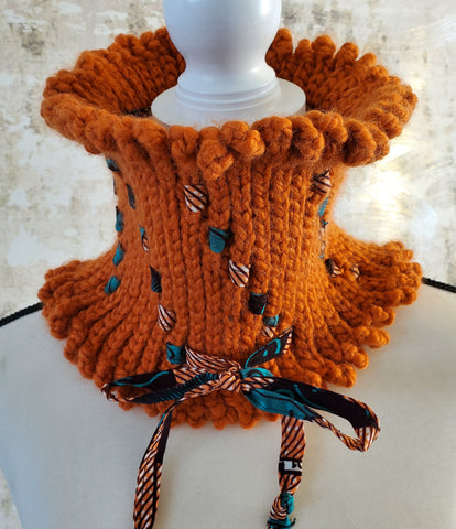 Missy Pumpkin Neck Warmer with Multi Ankara Fabric Detail.