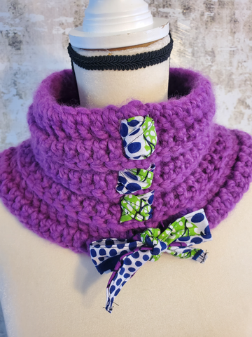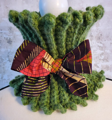 Chunky Green Neck Warmer with Ankara Fabric Tie