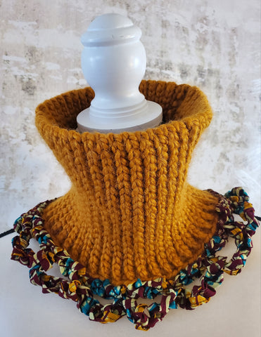 Wilmora Butterscotch Neck Warmer with Green Multi Ankara Fabric Detail