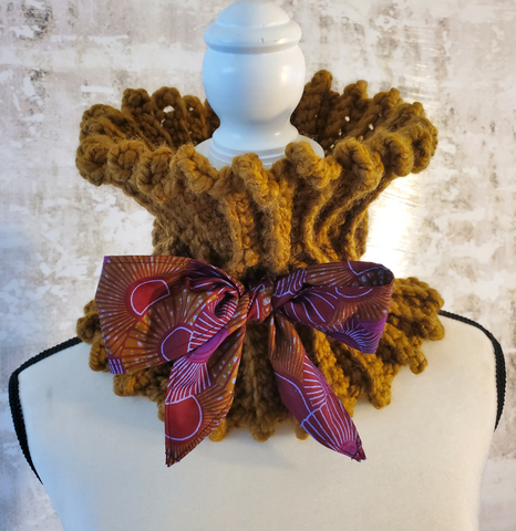 Chunky Light Brown Neck Warmer with Ankara Fabric Tie