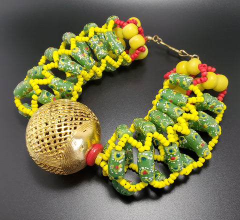 Chunky Gold-Green-Yellow Multi 3D Woven Necklace
