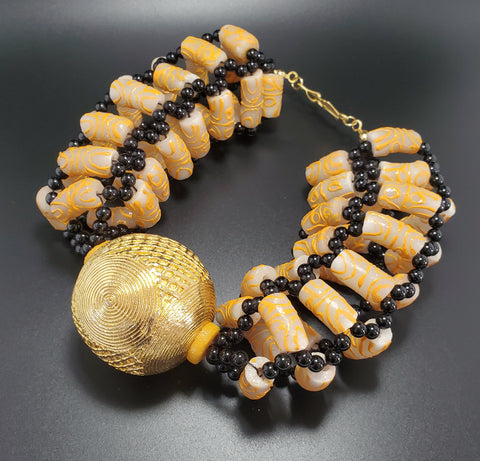 Chunky Gold-Beige-Yellow-Black Multi 3D Woven Necklace