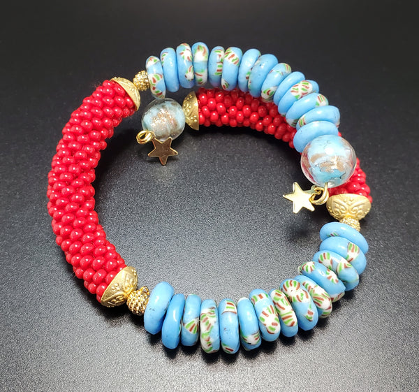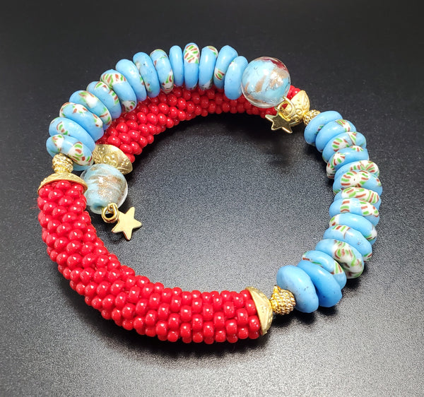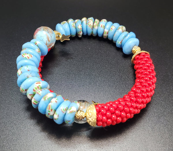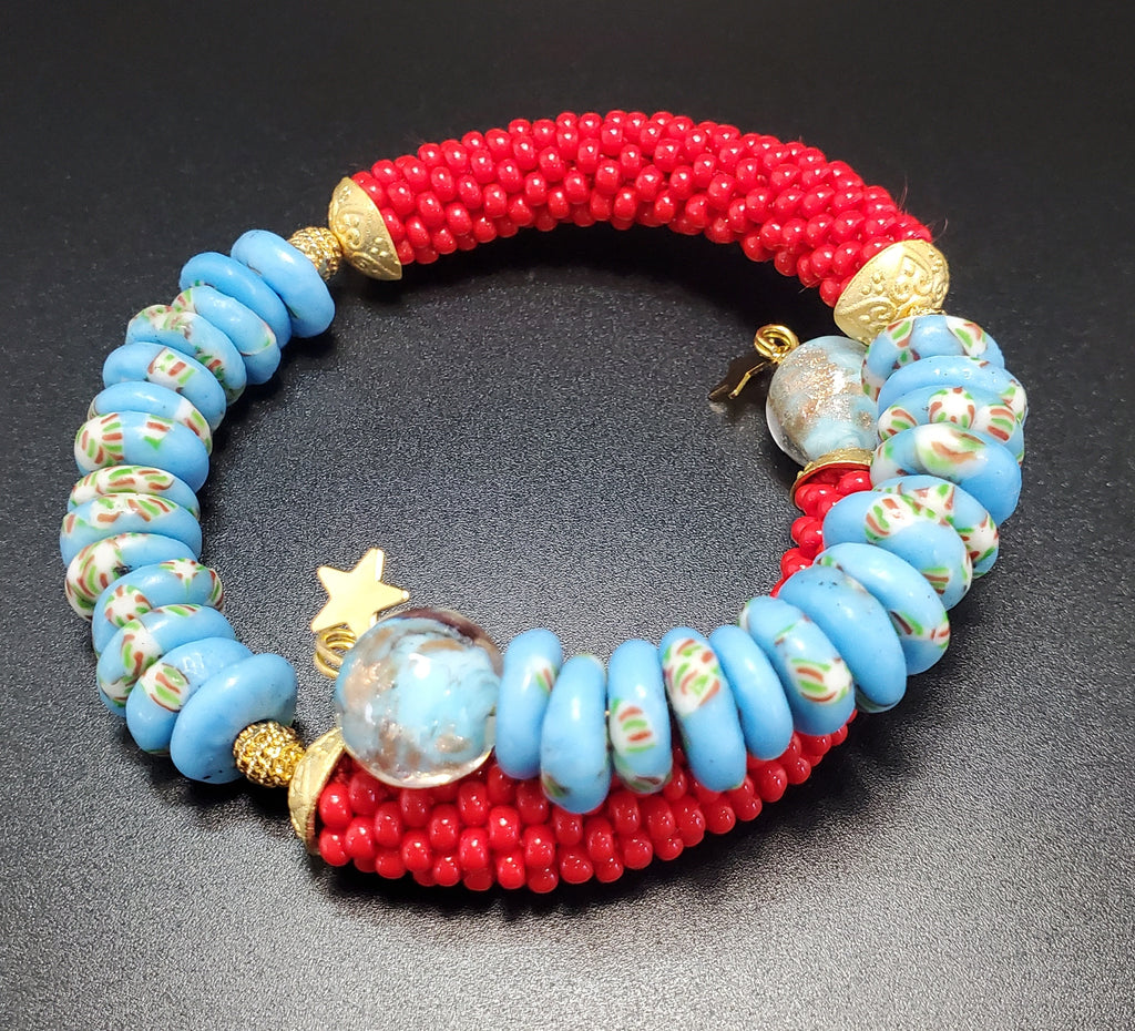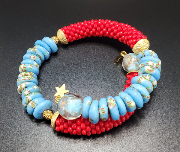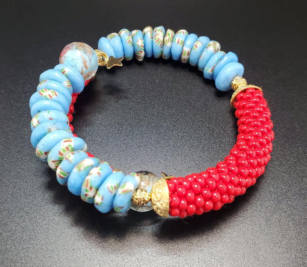 Red/Blue Multi Combo Beaded Crochet Bangle
