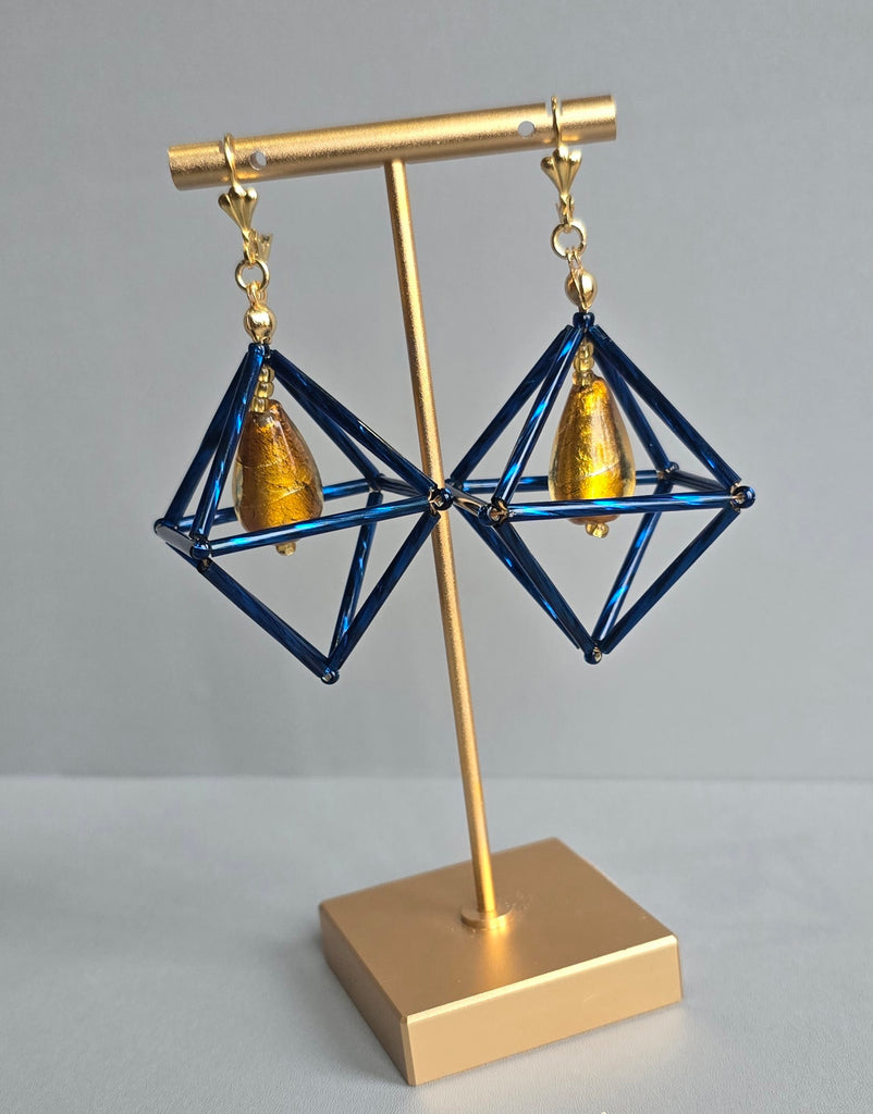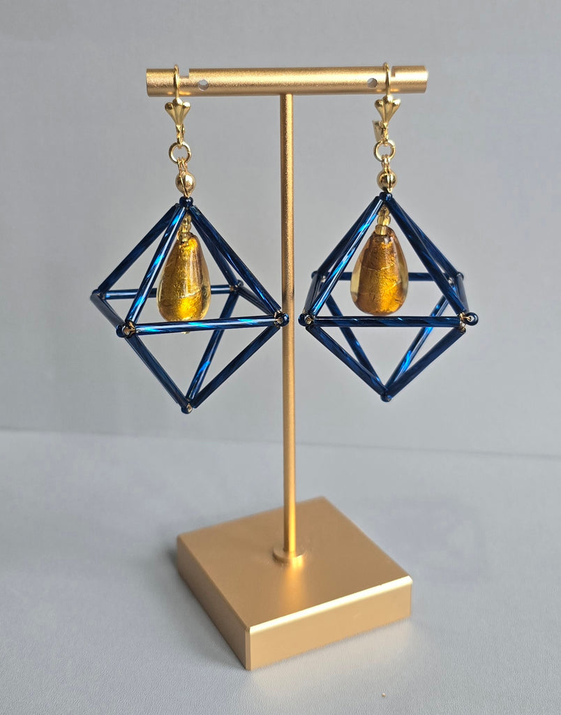 Blue & Mustard Octa Earrings - short