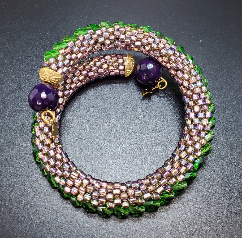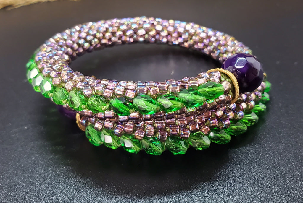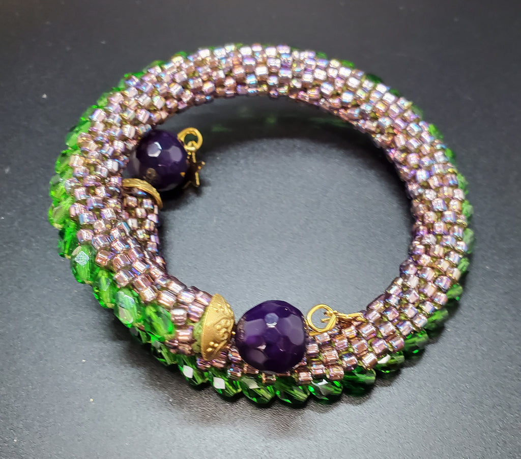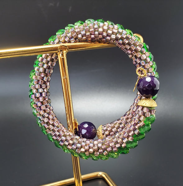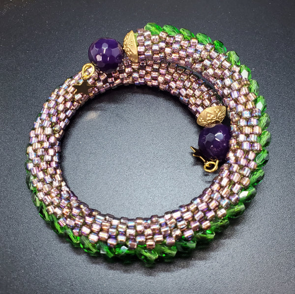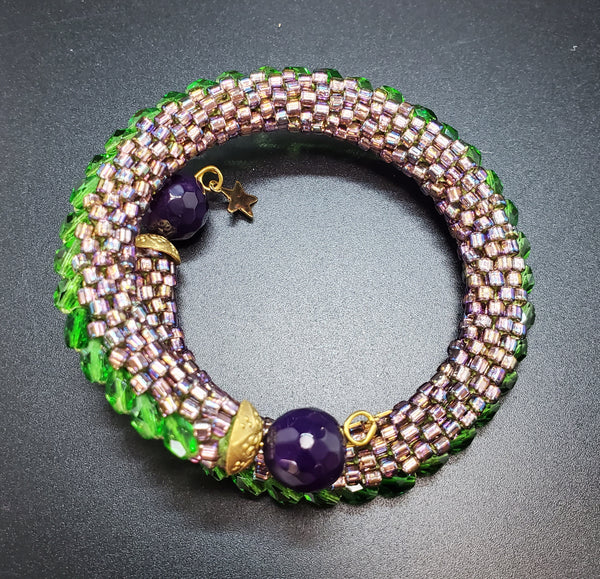 Purple Blush-Green Beaded Crochet Bangle